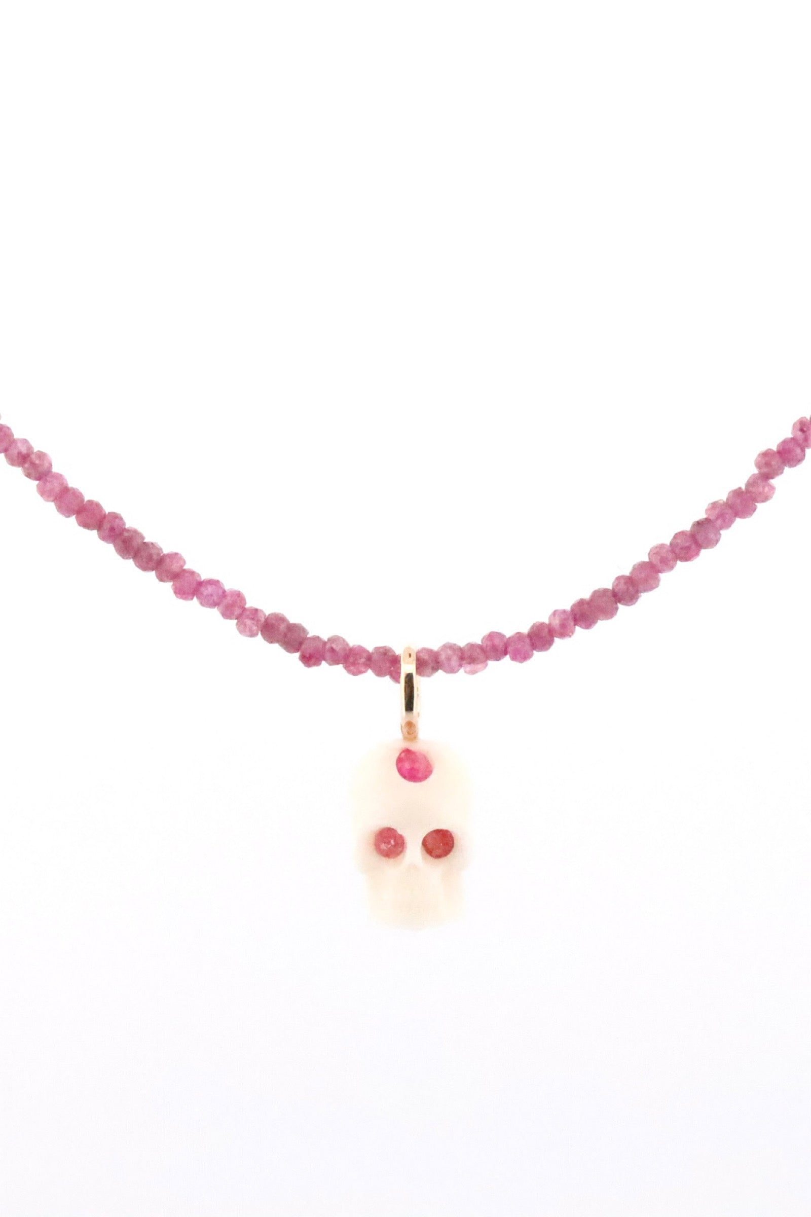 Hand Carved Bone Skull with Pink Sapphires & 14k Yellow Gold Bail Charm