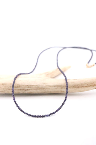 Micro Blue Sapphire Beaded Necklace with 14k Yellow Gold Clasp.