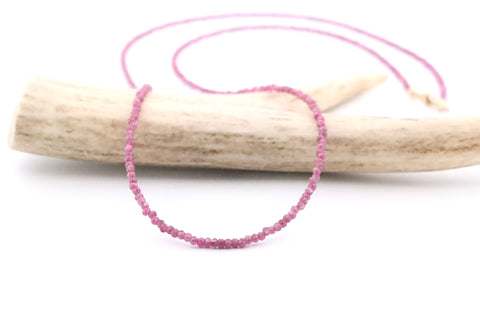 Micro Facetted Ruby beaded Necklace with 14k Yellow Gold clasp.