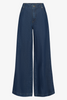 Wide-leg jean in cotton-linen denim. The Dillon Jean is designed with a high-rise waist and a long, straight leg that falls effortlessly to the floor. Finished with a clean back, front pockets, and a classic zip fly.