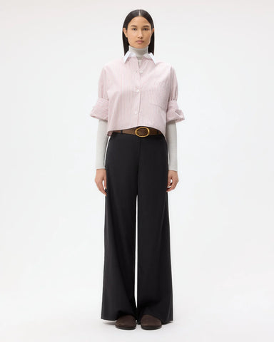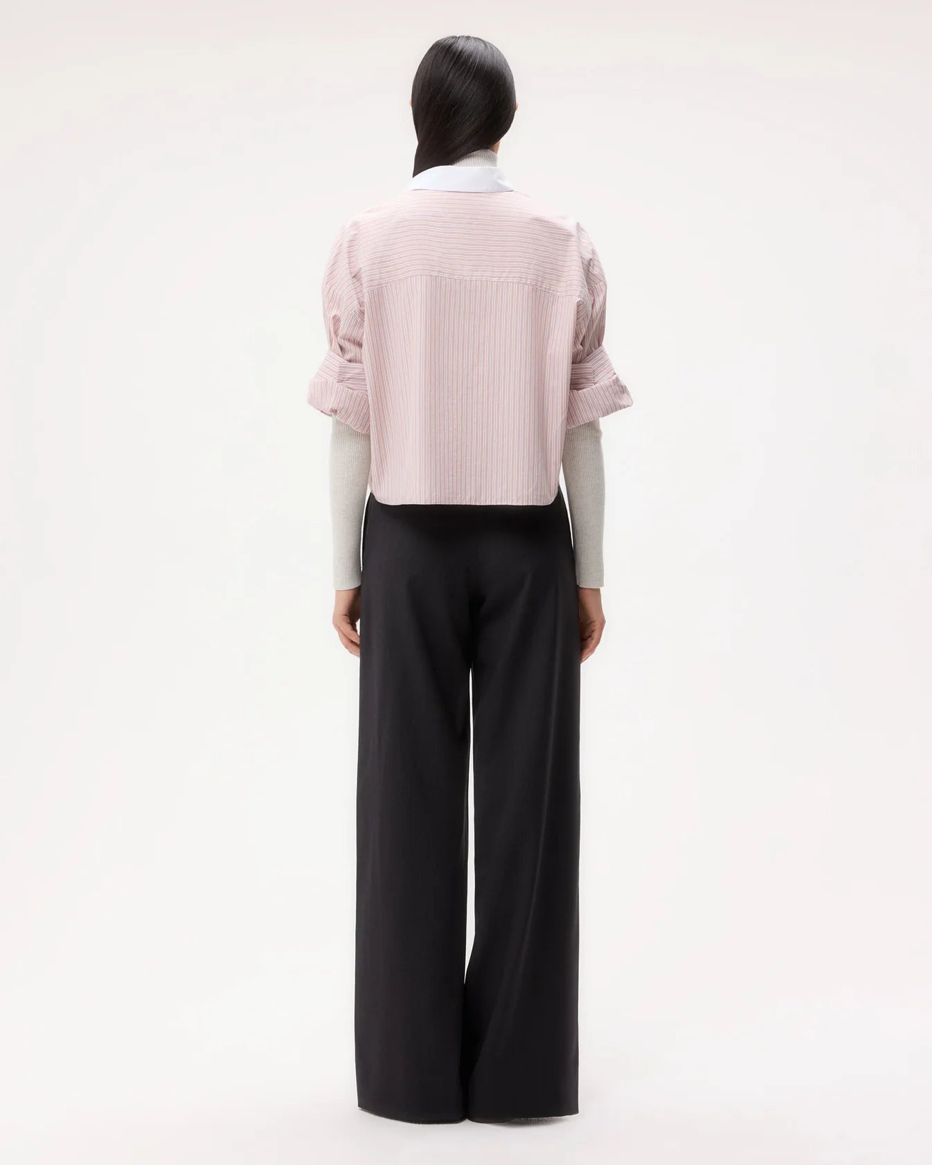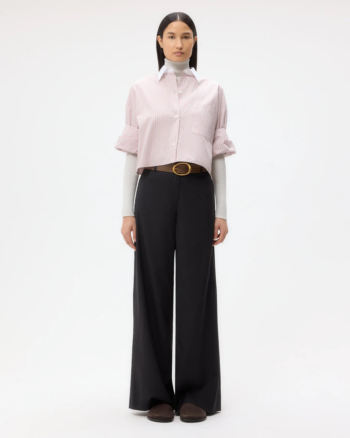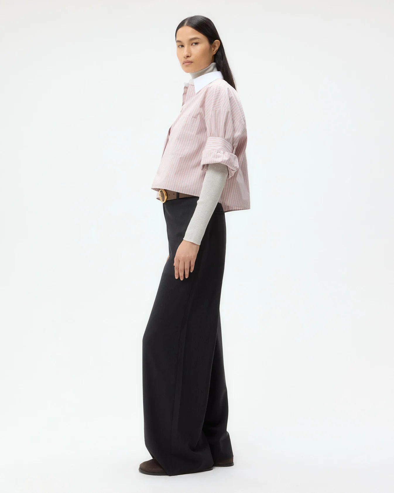 Cropped, short sleeved button down in striped superfine italian cotton shirting. The Next Ex is a boxy silhouette. Complete with a chest patch pocket, button up placket, spread collar, and our signature double roll button cuffs.