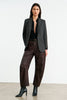 Mid-rise, relaxed fit pant in Italian lambskin leather. Uniquely curved silhouette. Seam detail at knees. Gusset at inseam. Zip fly. Shank closure. Top-stitched front and back patch pockets. Belt loops. Fully lined.