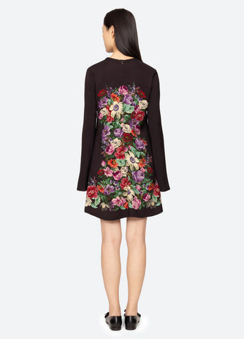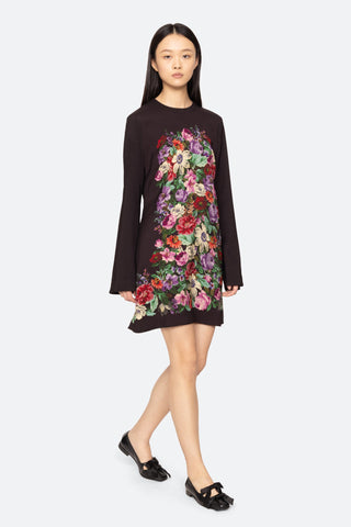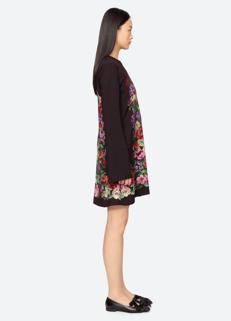 The Viktoria floral-print dress features a bold all-over floral motif, a chic mini silhouette, and elegantly flared sleeves. Its striking pattern and fluid shape create a statement piece with effortless femininity.