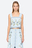 The Audra embroidered tank top features a cropped silhouette with delicate scalloped edges and tie fastening at the back. Adorned with detailed floral embroidery throughout, it offers a feminine and charming finish.