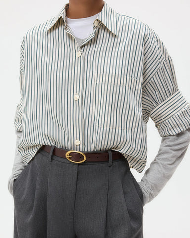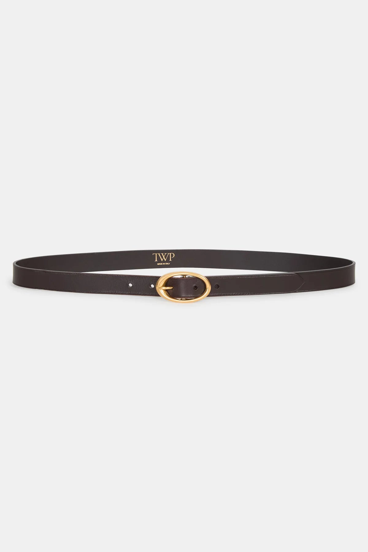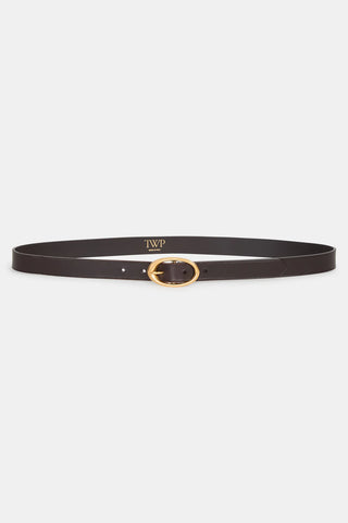 Narrow belt in luxe Spanish cowhide leather that burnishes and softens over time. The Narrow Belt has a strap that will contour to the natural shape of your body with use. Accented with a custom molded brass buckle, coated with an antique gold finish. Made in Italy.