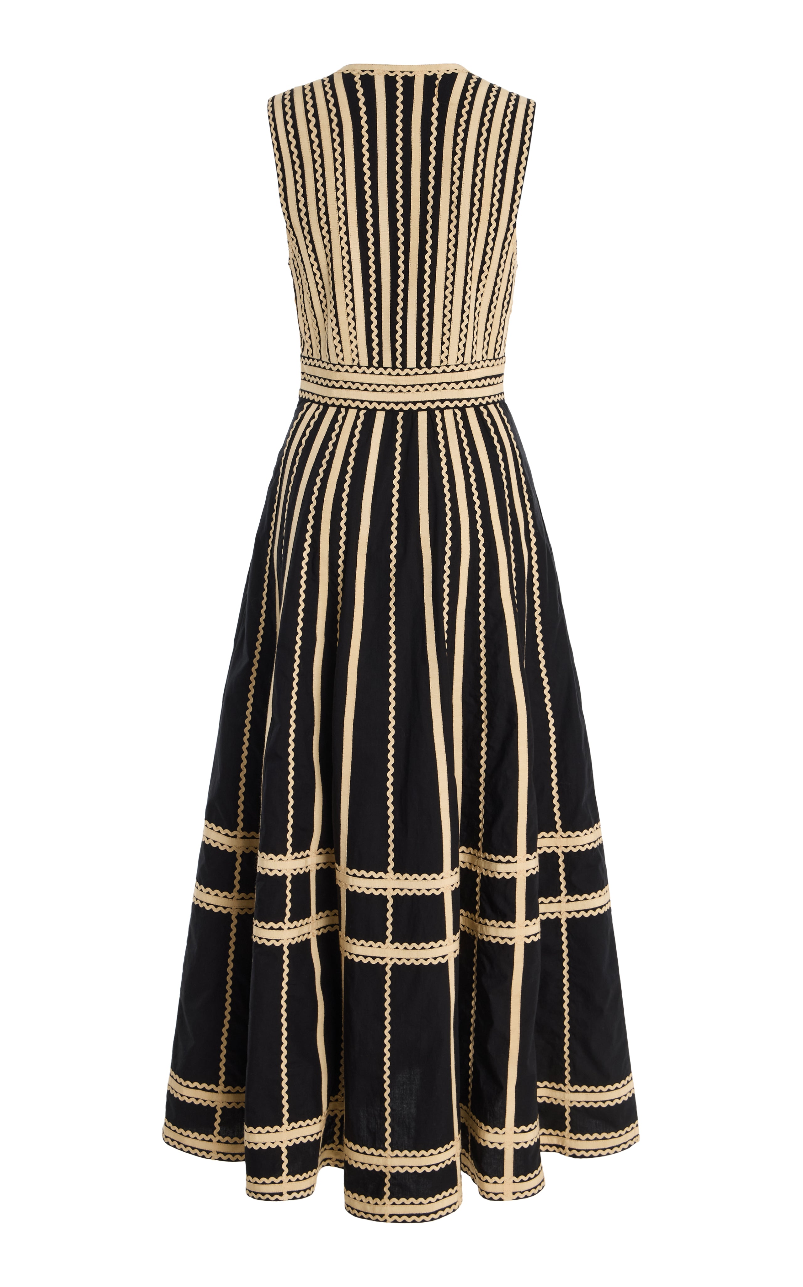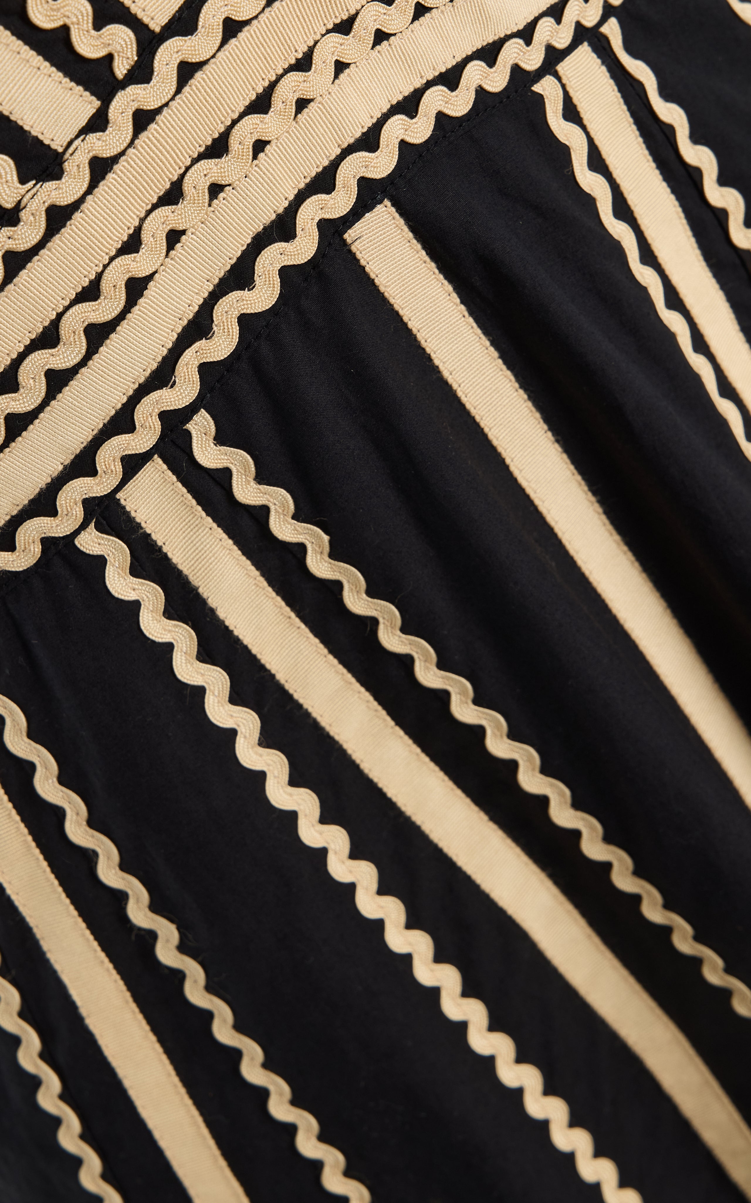 Palermo' has a plunging A-line silhouette made from cotton with ribbon-like embroidery.