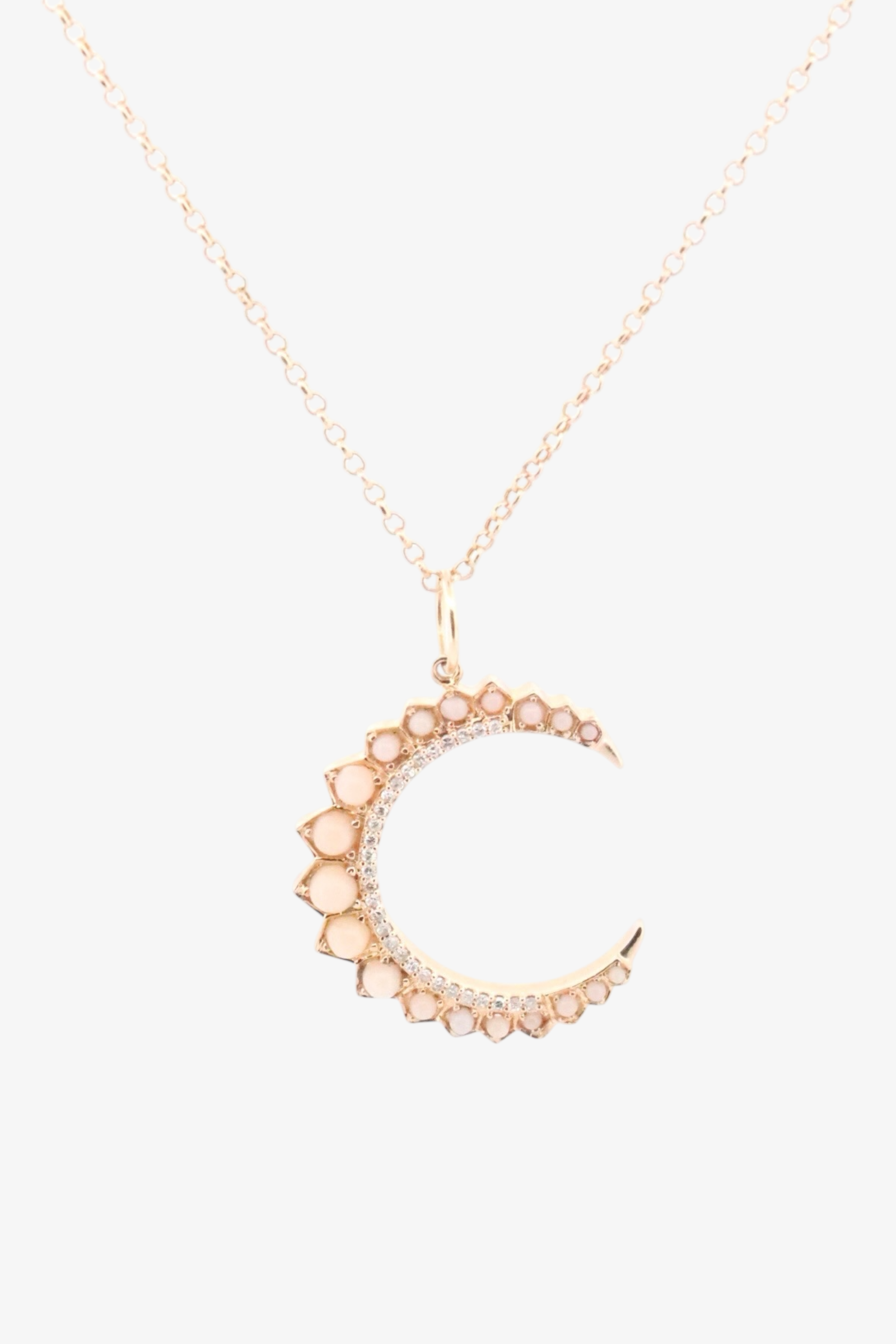 14k Yellow Gold, Pink Opal & White Diamond Necklace
