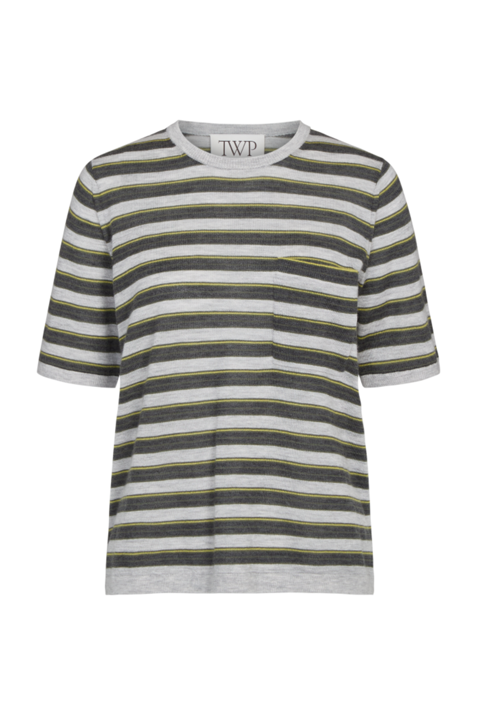 Long sleeve striped crewneck shirt in superfine cashmere. The Striped True Crewneck is a relaxed, slightly boxy silhouette with a chest patch pocket. Complete with fully fashioned rib trim at the neck, cuffs, and hem.100% CASHMERE